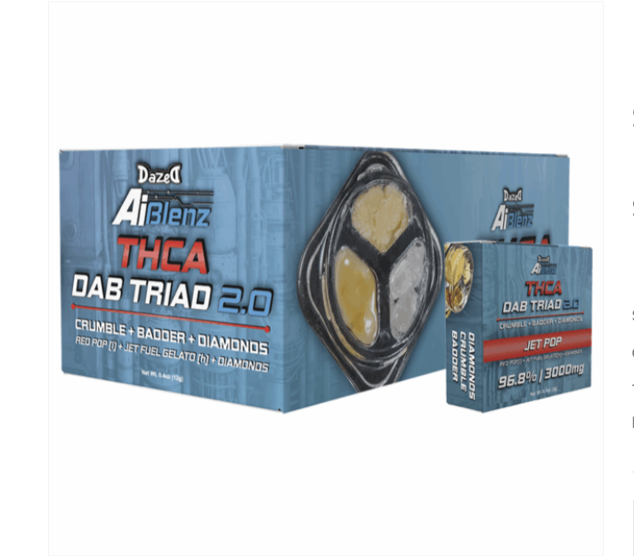 Crafted for the bold, this THCA Dab Triad fuses three powerhouse strains into a terp-loaded, ultra-potent trio. With 96.8% purity, each hit is precision-engineered to highlight the best of all worlds: explosive flavor, a smooth full-bodied experience, and crystal-clear intensity. Whether you dab them solo or layer them together, this is the pinnacle of elevated sessions.